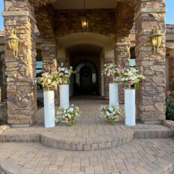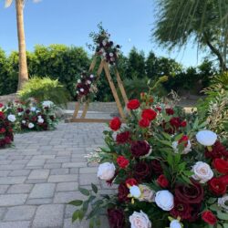 - Fresh eucalyptus to decorate the ceremony area, welcome table, gift table, signs, dessert table, sweetheart table, and bar. (Not enough for all guest tables or ceremony arch)